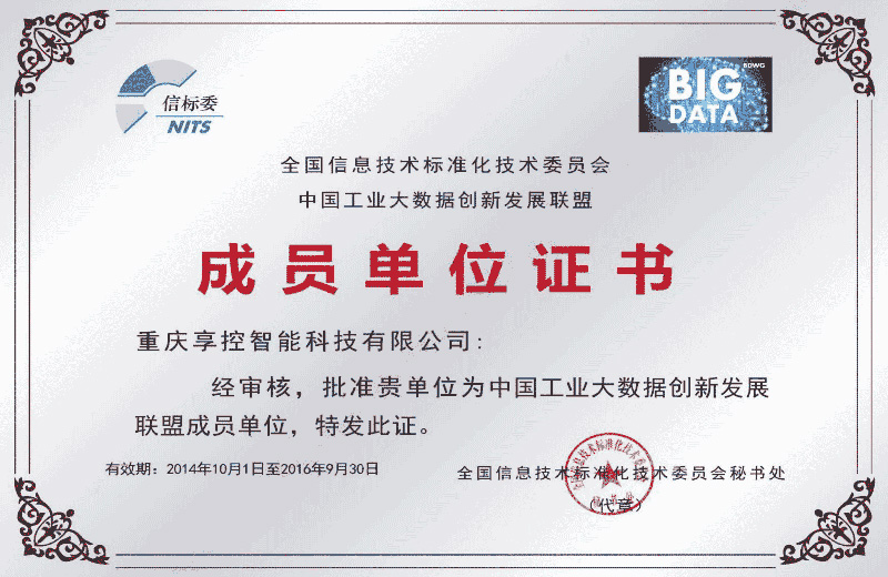 全國信標委批準重慶享控智能科技有限公司為“大數據標準工作組全權成員單位”